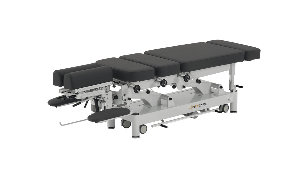 The Pacific Chiropractic Variable Height Adjusting Table Pro Series delivers professional-grade functionality designed for modern chiropractic practices. This PRO series model combines electric height adjustment with precision drop mechanisms across cervical, thoracic, lumbar, and pelvic regions, all controlled via foot activation and hand tensioning systems. The dual-control design enables practitioners to position patients with accuracy while maintaining treatment flexibility. Built as a cost-effective solution without compromising on performance, this adjusting table supports diverse treatment protocols and patient needs, making it an essential addition to any clinical setting focused on delivering quality care.